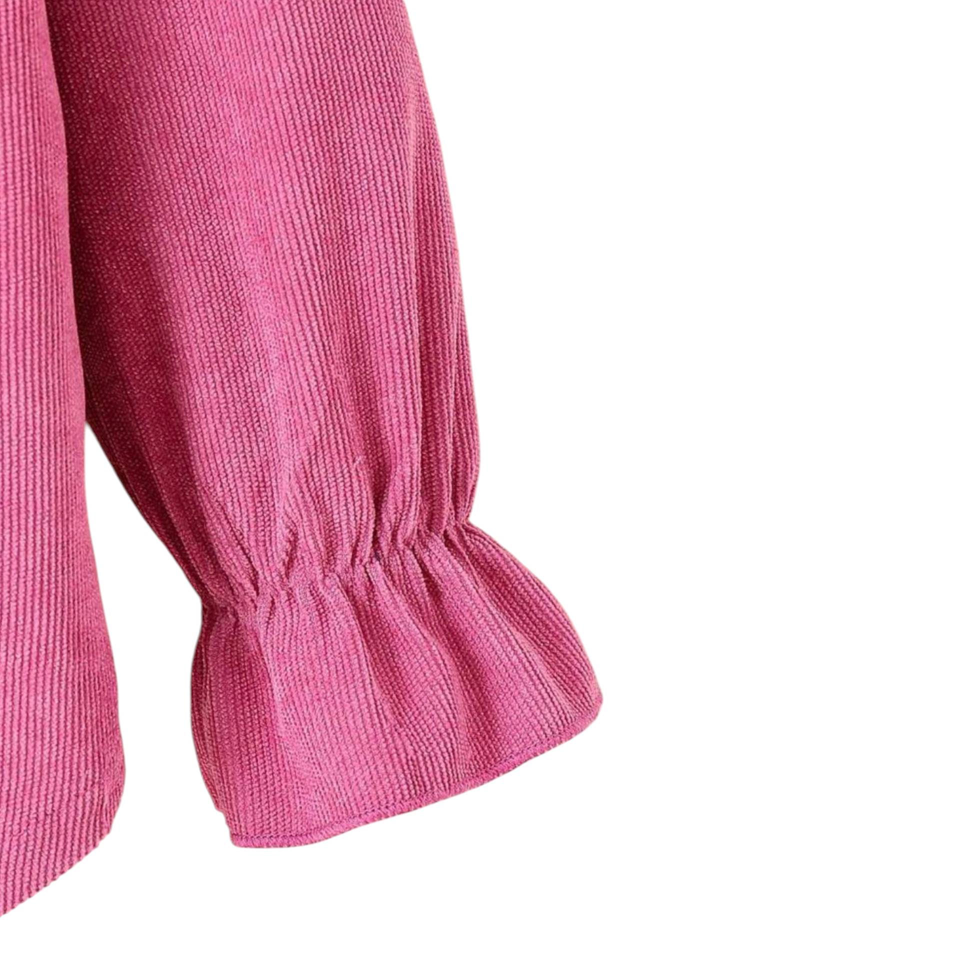 Prachtige corduroy blouse in de kleur donkerroze. De blouse is heerlijk warm en dus perfect voor de herfst- en wintermaanden! Super leuk te combineren met onze handgemaakte leggings.