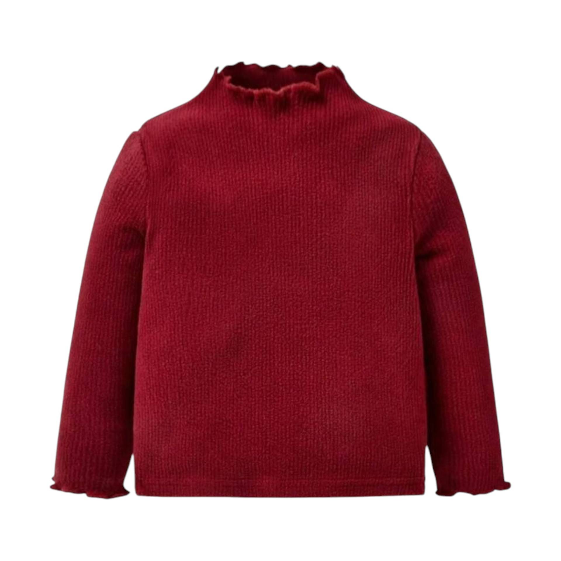 Dit donkerrode shirt met lange mouwen is leuk te combineren met één van onze handgemaakte broekjes of rokjes. De stof voelt heel zacht aan en is lekker warm voor jouw kleintje.