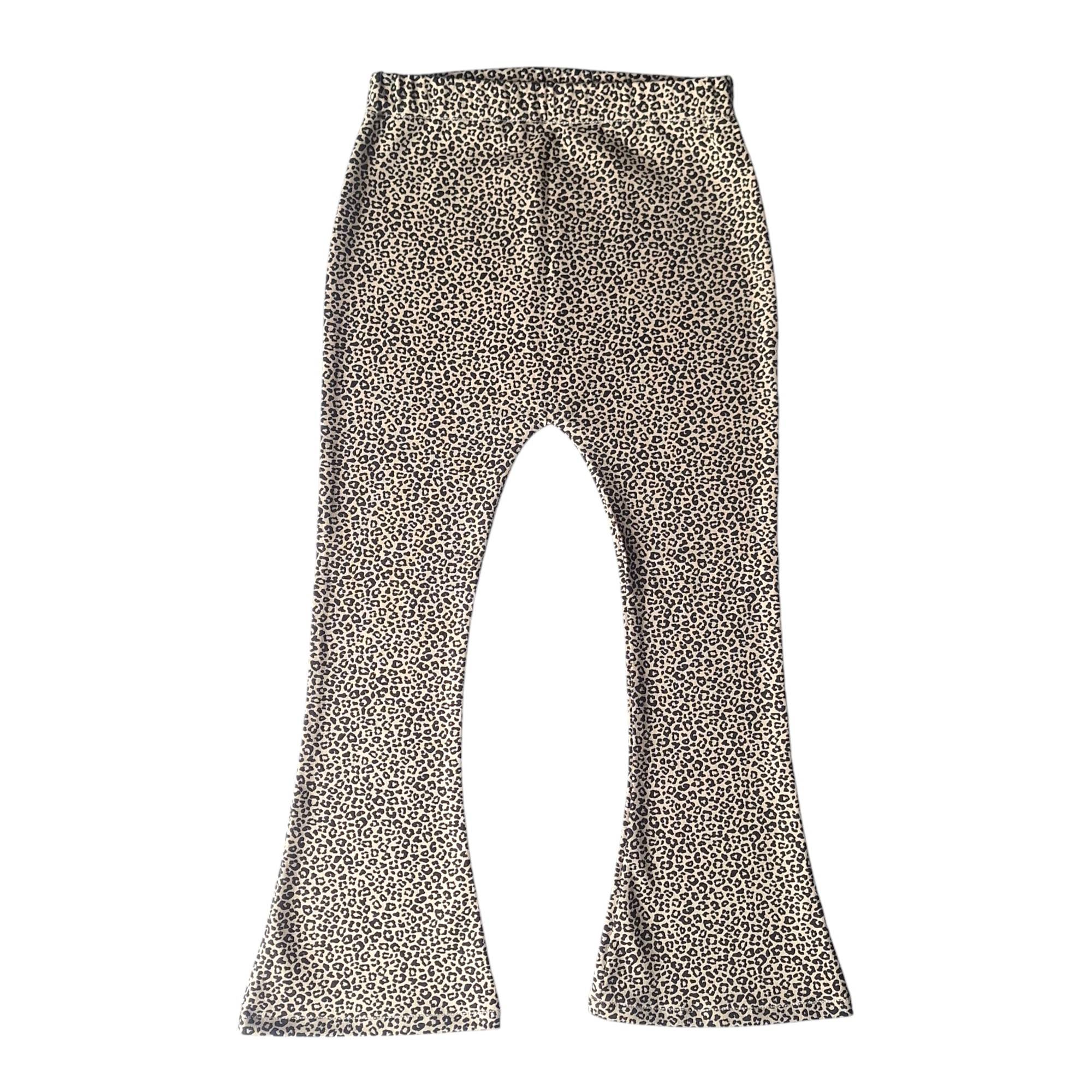 Deze flared babylegging is gemaakt van een zachte tricot met een beige panterprint in maat 98/104.