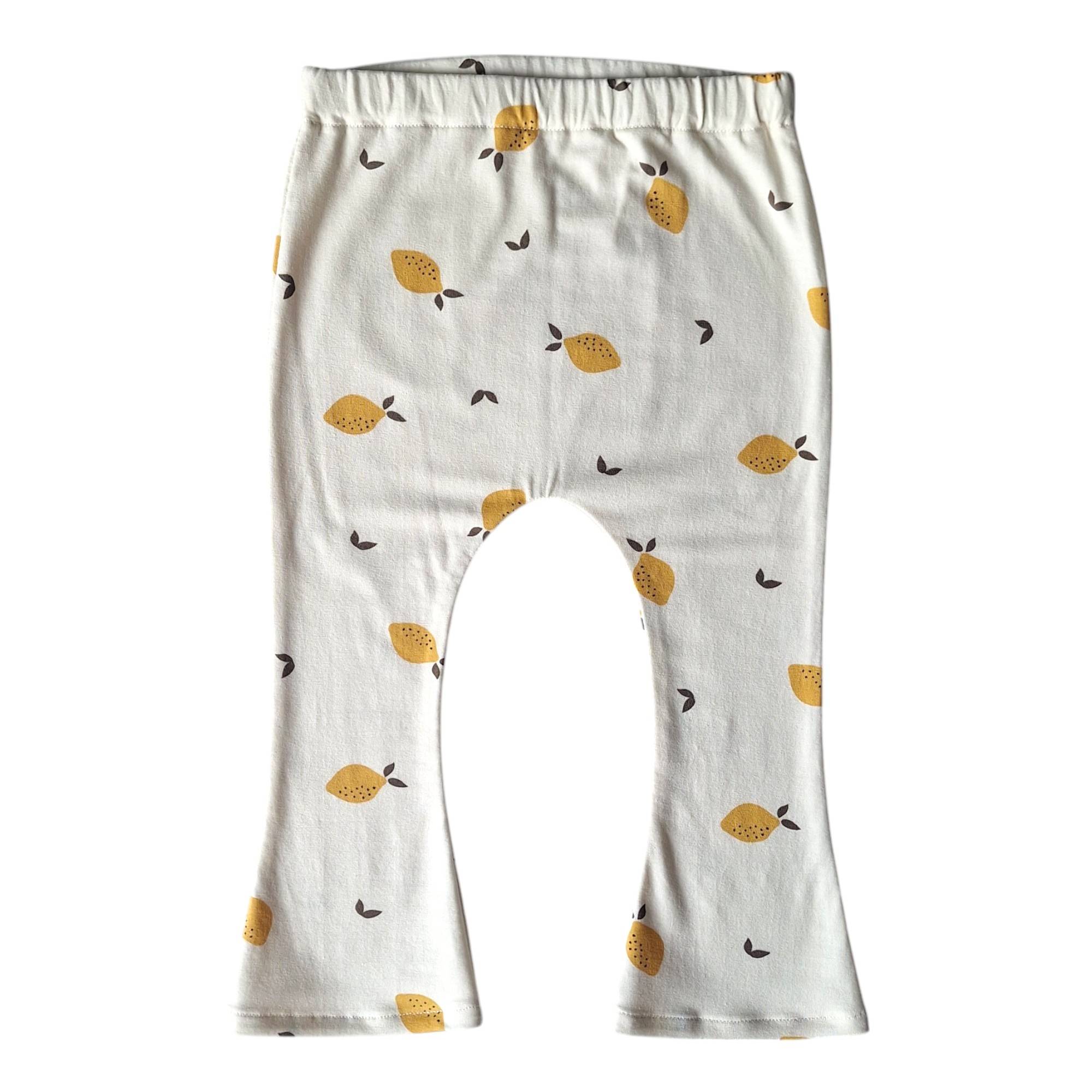 NIEUW! Deze geweldige flared legging is echt een musthave voor je kleintje! De legging is gemaakt van een zachte tricot met een citroentjes print in maat 86/92. Zit heerlijk comfy en het patroontje is toch geweldig! Het vormt een perfect setje met bijvoorbeeld een geel of groen shirtje!