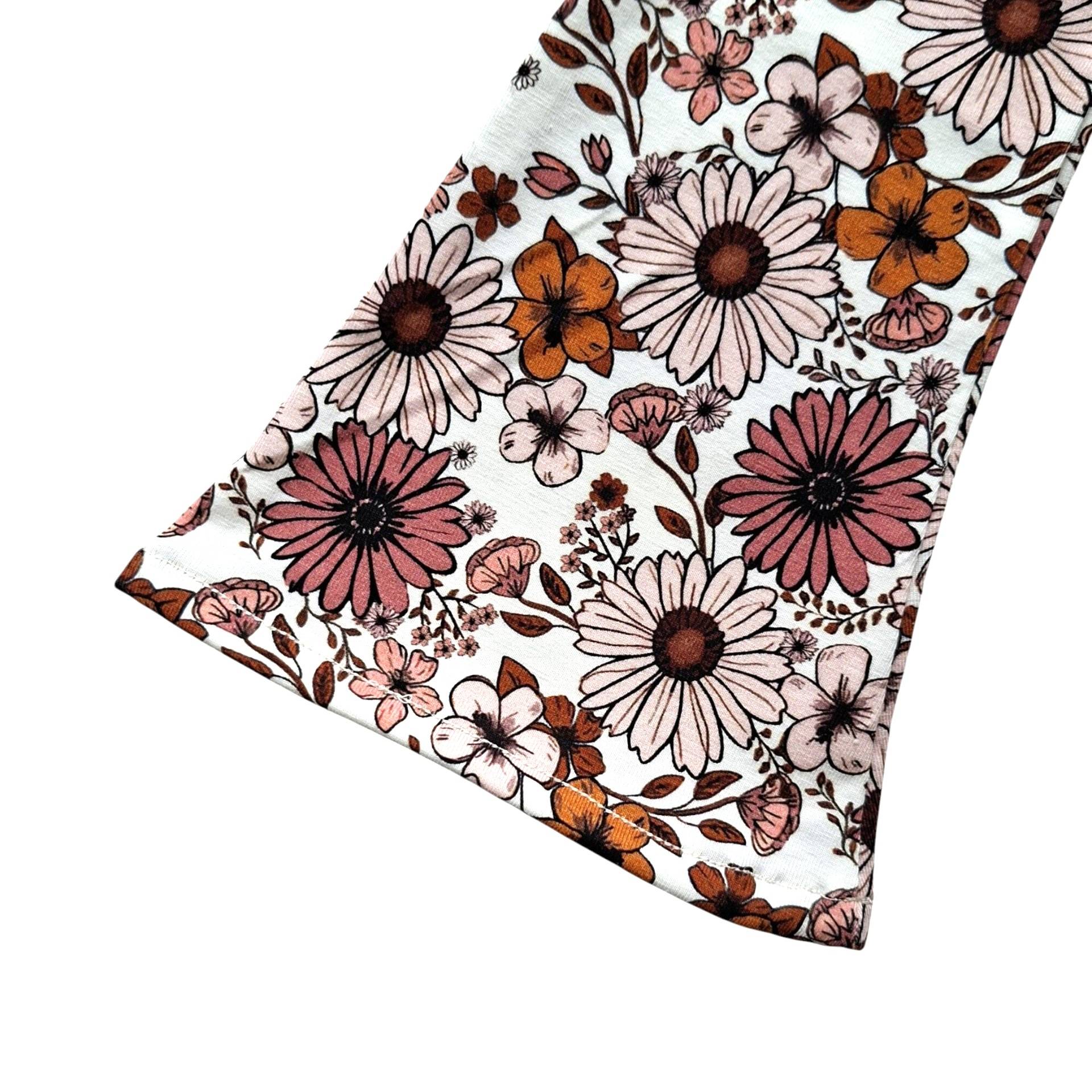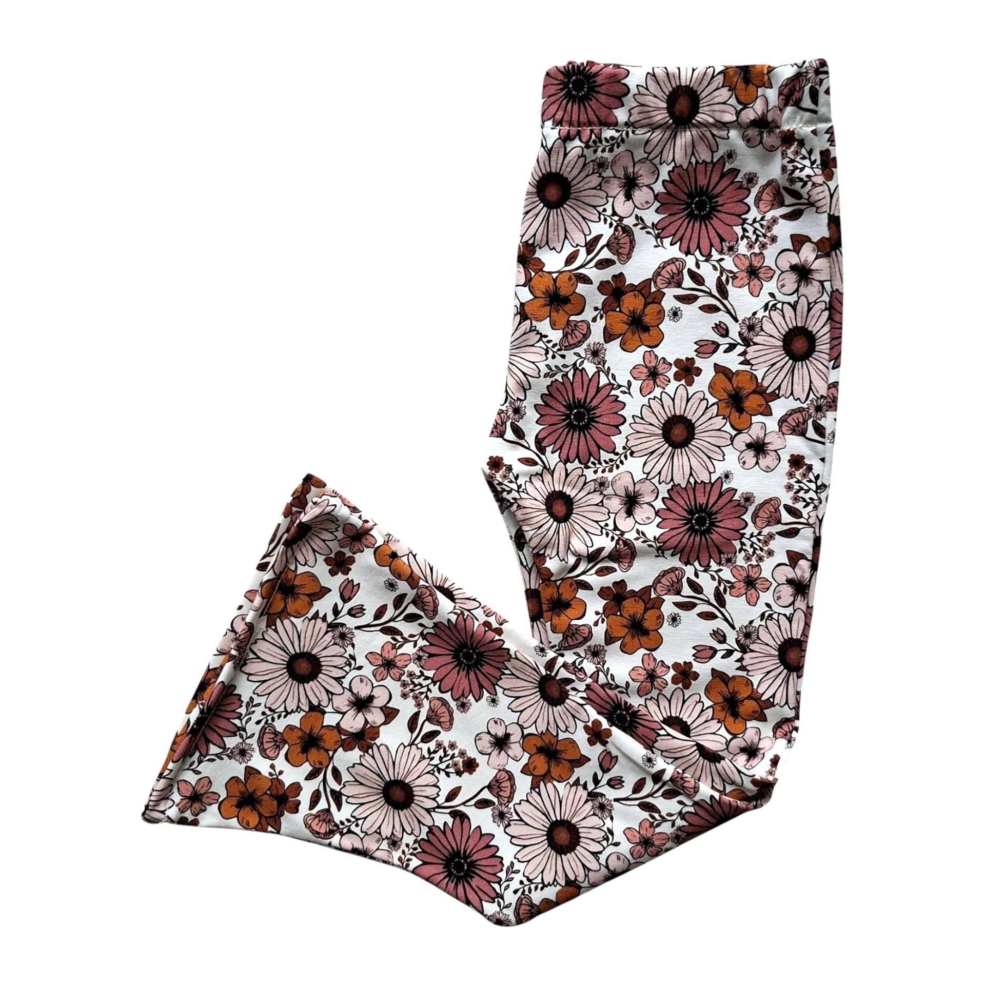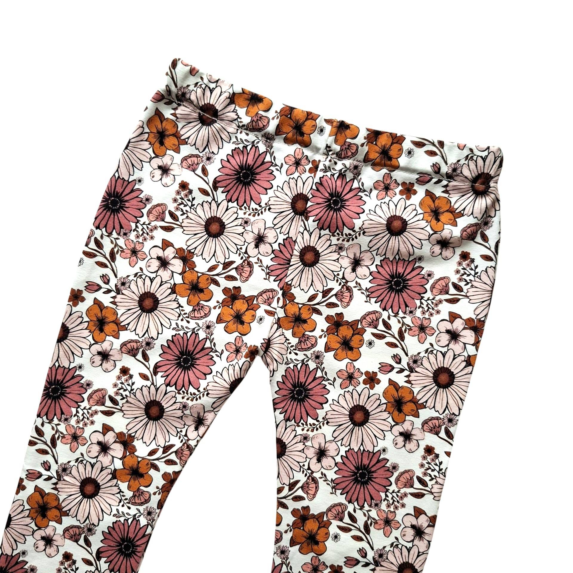 NIEUW! Deze geweldige flared legging is echt een musthave voor je kleintje! De legging is gemaakt van een zachte tricot met een vintage madeliefjes print in maat 98/104. Zit heerlijk comfy en het patroontje is toch geweldig! Het vormt een perfect setje met bijvoorbeeld een bruin of roze shirtje.