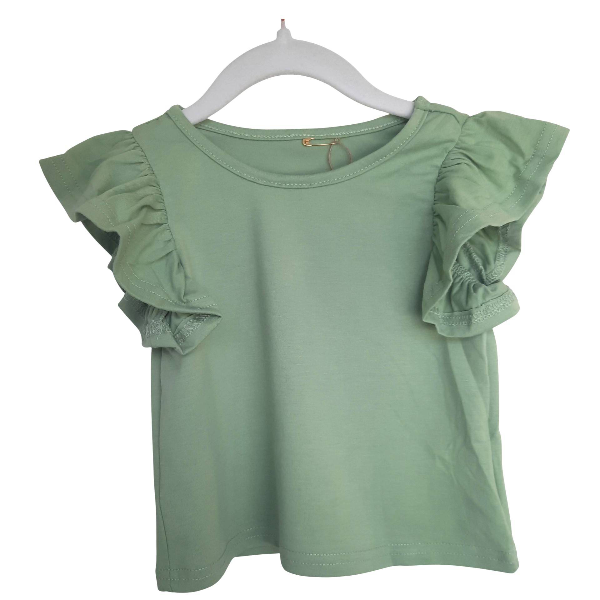 Dit groene shirt is leuk te combineren met één van onze handgemaakte broekjes of rokjes. Het shirtje is maat 62/68, gemaakt van 94% katoen en 6% elastaan.