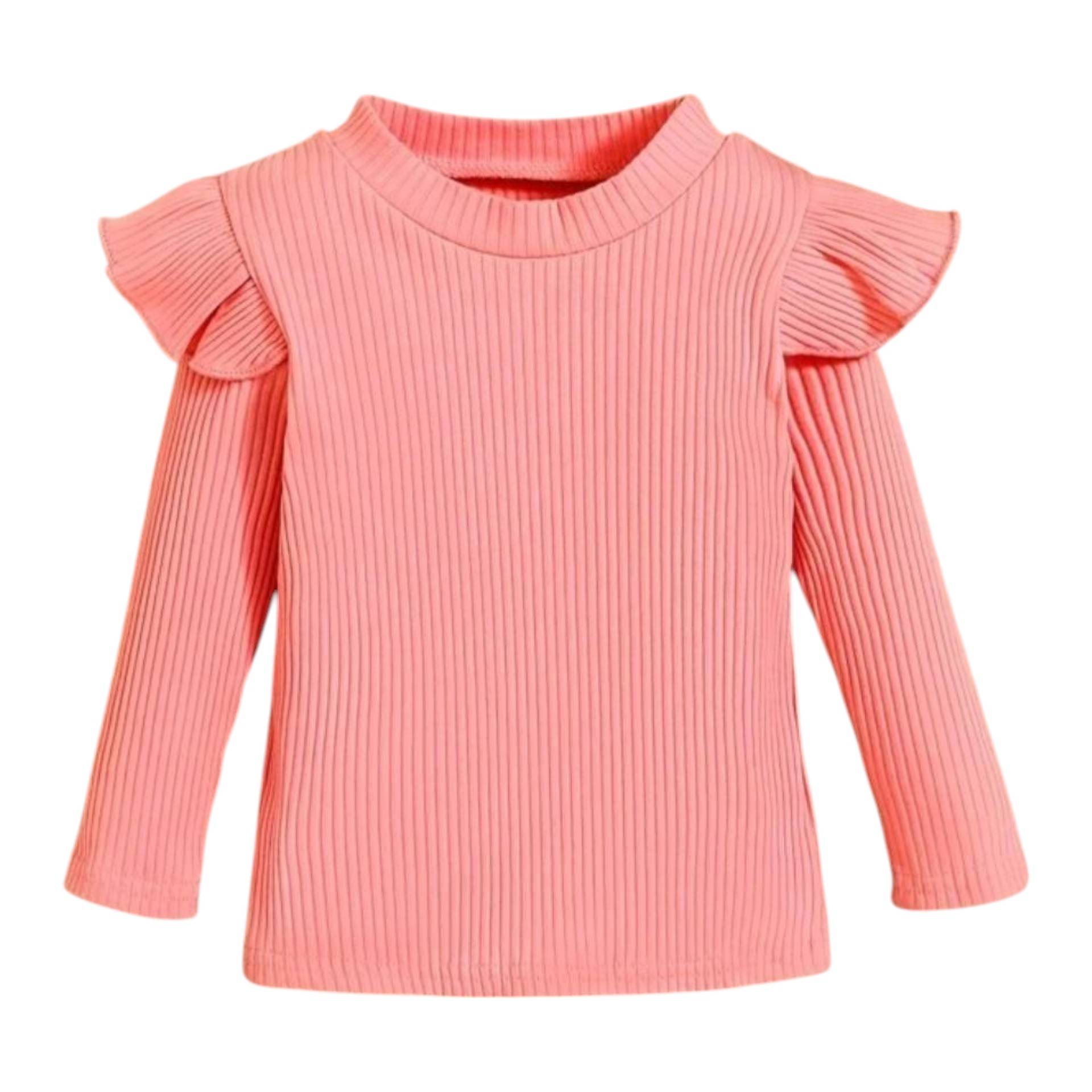 Dit shirt in koraal kleur met lange mouwen is leuk te combineren met één van onze handgemaakte broekjes of rokjes. Het shirtje is maat 74/80, gemaakt van 95% katoen, 5% elastan.