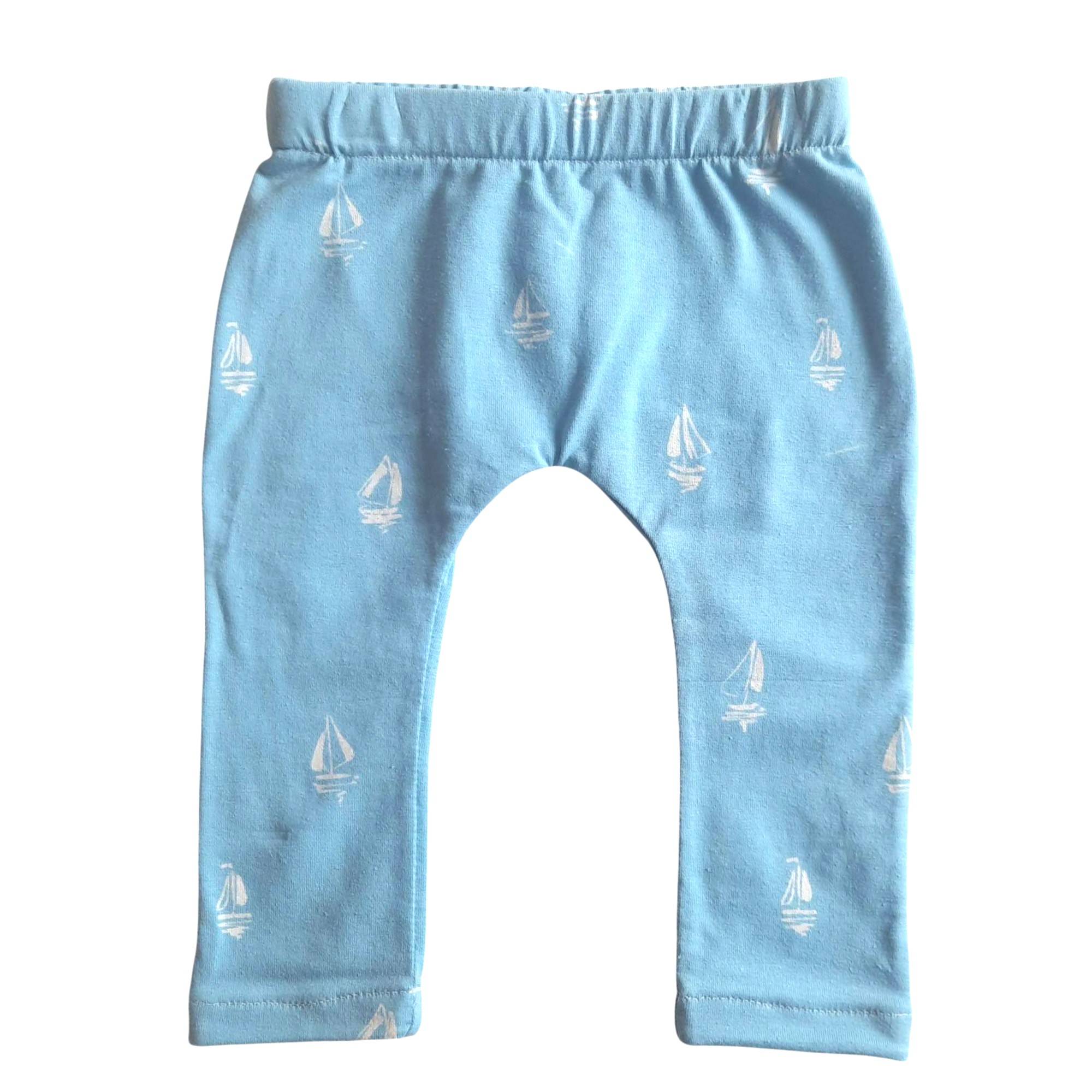 Deze babylegging is gemaakt van een zachte blauwe tricot met witte bootjes in maat 74/80.