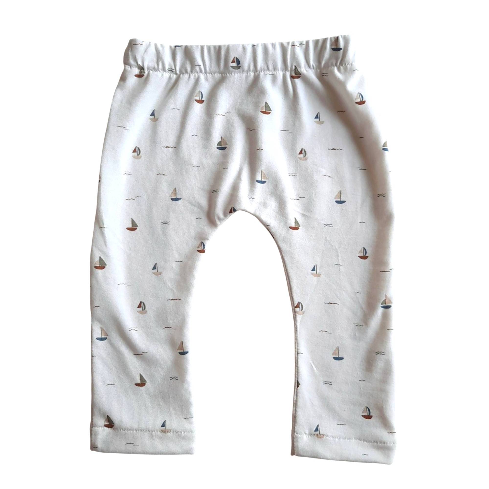 Deze babylegging is gemaakt van een zachte witte tricot met zeilbootjes in maat 50/56.