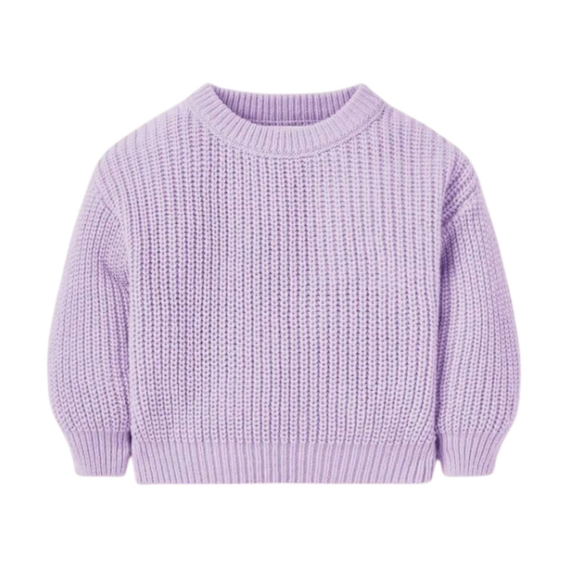 Deze (oversized) gebreide trui is leuk te combineren met één van onze handgemaakte broekjes. De trui is maat 50/56, gemaakt van 100% acryl.
