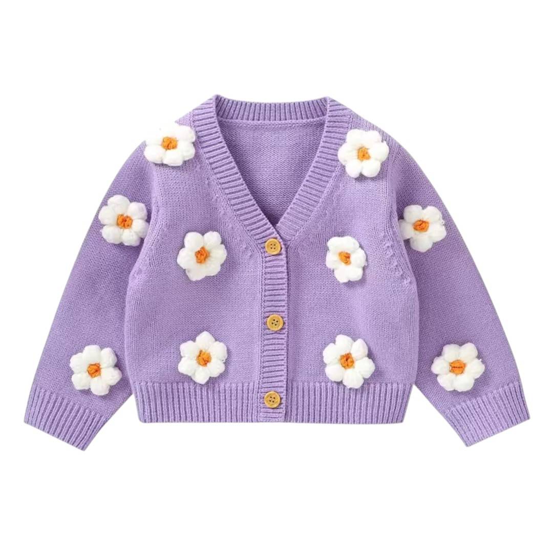 Vest met witte bloemen in maat 74/80. Gemaakt van 100% acryl.