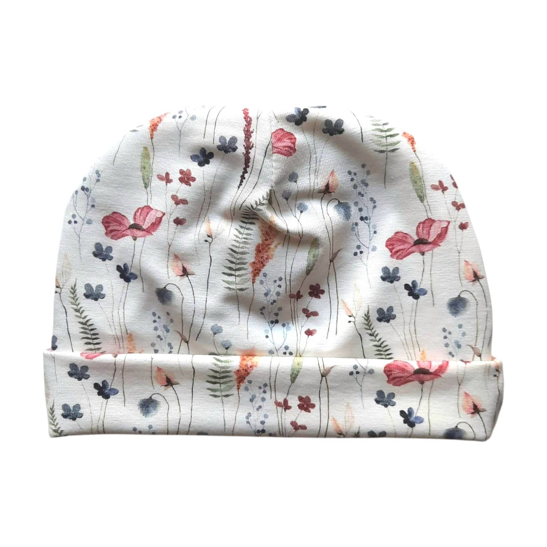 Dit leuke mutsje is gemaakt van een zachte tricotstof , in maat 6-12 maanden.