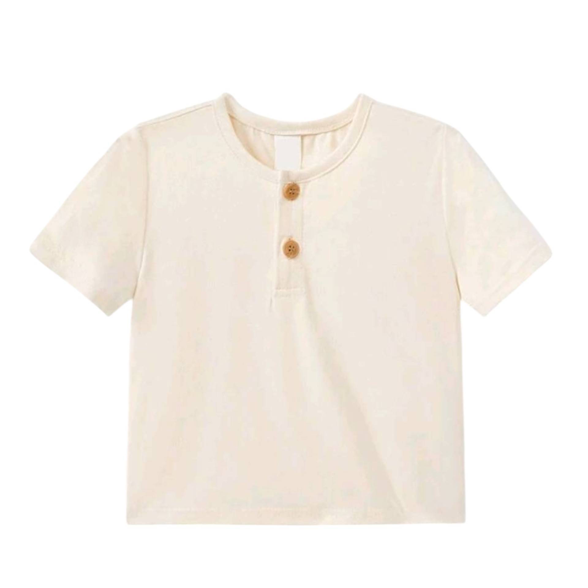 Dit beige shirt is leuk te combineren met één van onze handgemaakte broekjes. Het shirtje is maat 62/68, gemaakt van 94% katoen, 6% elastan.