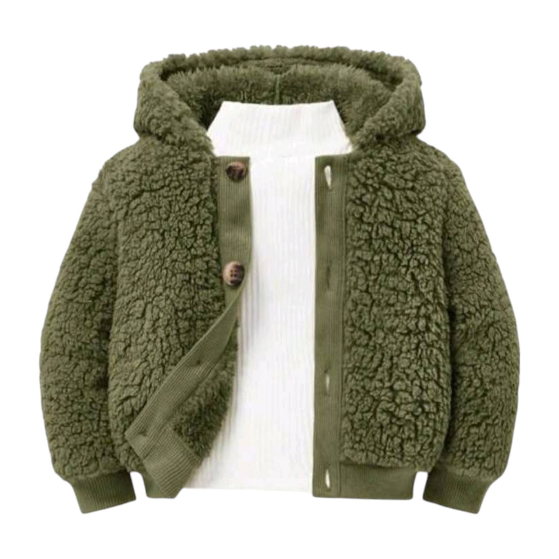 Dit donkergroene teddy jasje met knopen aan de voorzijde is heerlijk zacht voor jouw kleintje. Ook prachtig te combineren met één van onze handgemaakte leggings.