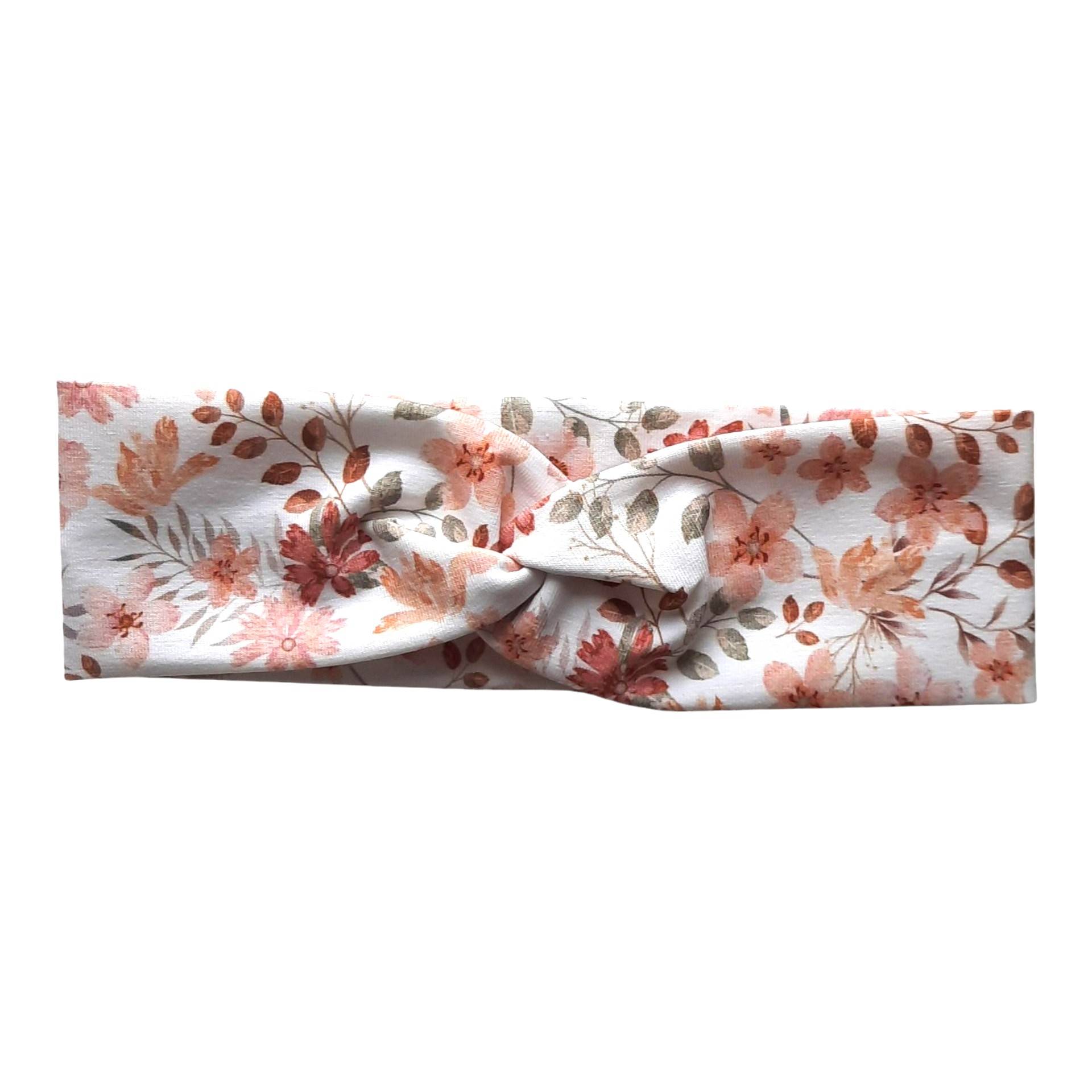 Twisted haarband – pastel bloem perzik – maat 86/92