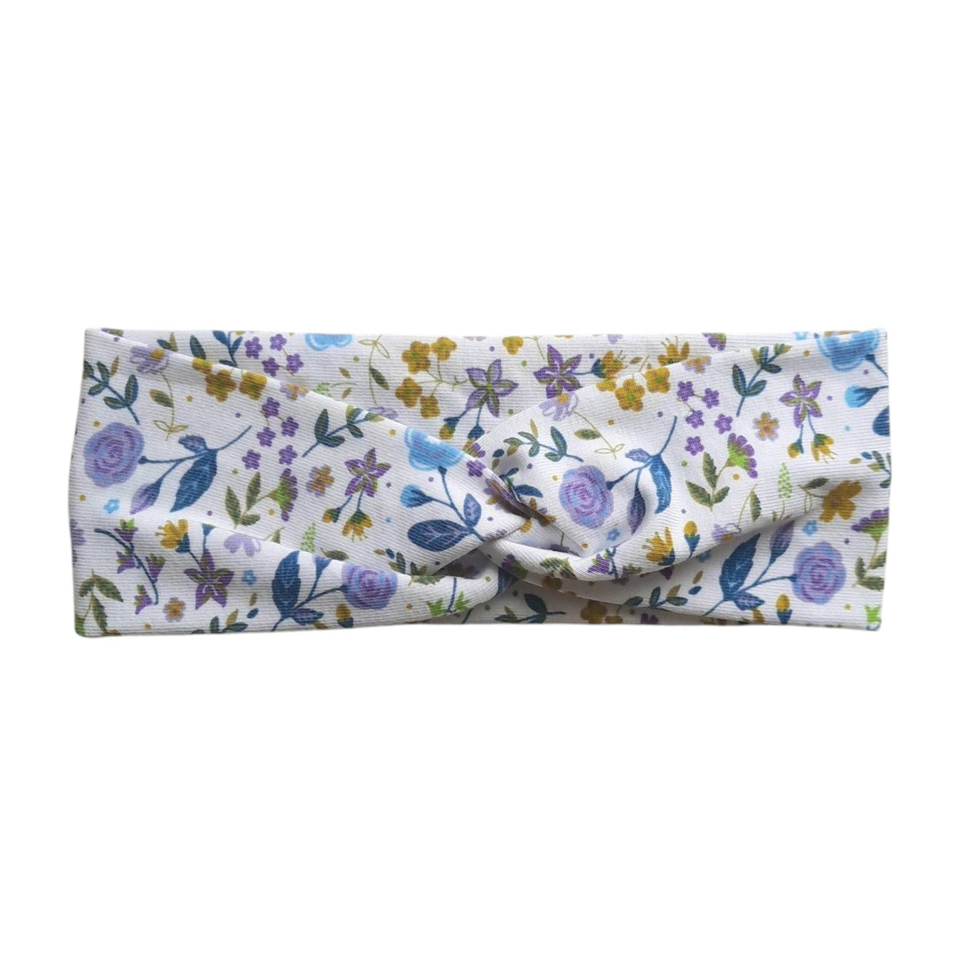 Twisted haarband – tricot flowers lilac – maat 50/56