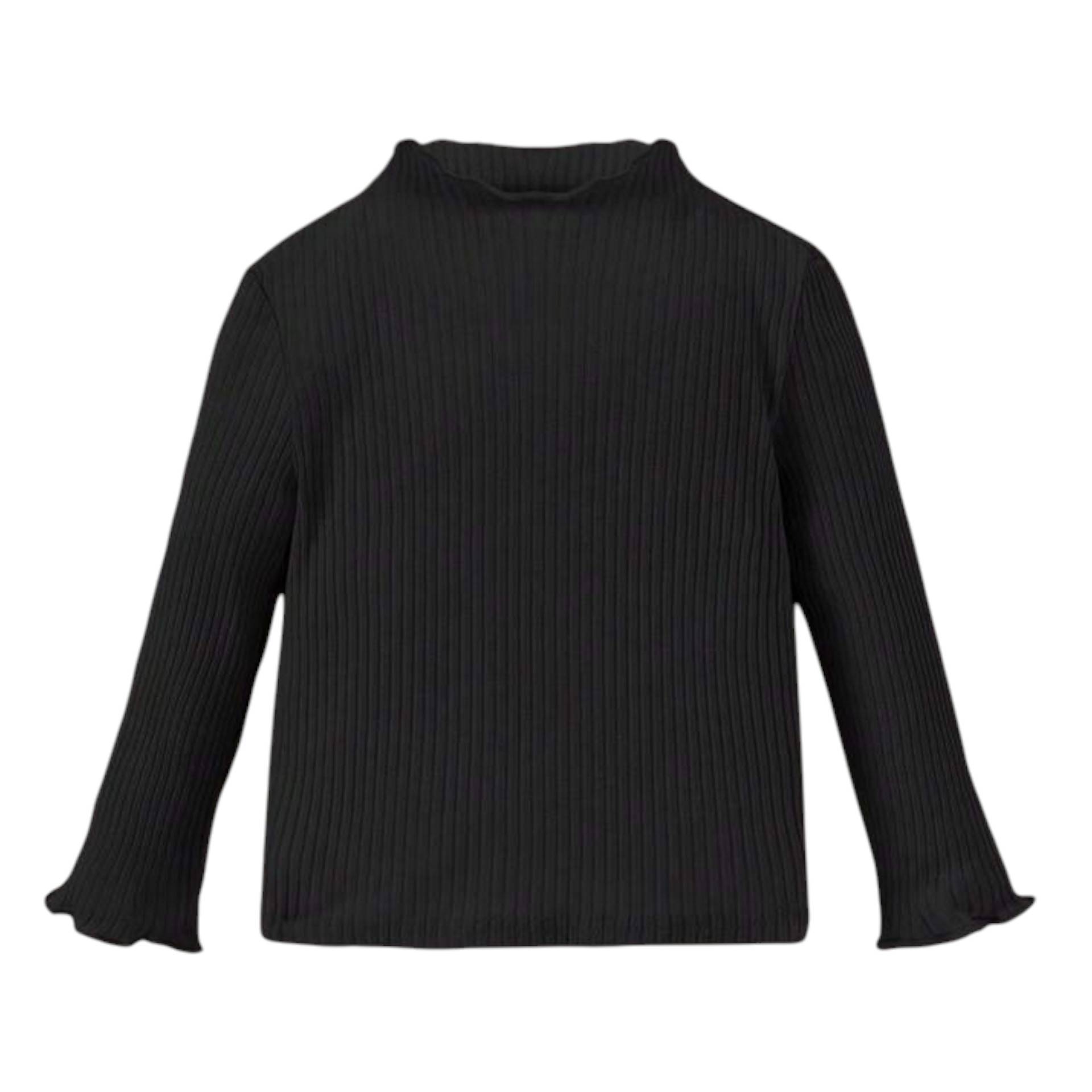 Dit zwarte shirt met lange mouwen is leuk te combineren met één van onze handgemaakte broekjes of rokjes. Het shirtje is maat 50/56, gemaakt van 93% katoen en 7% elastan.
